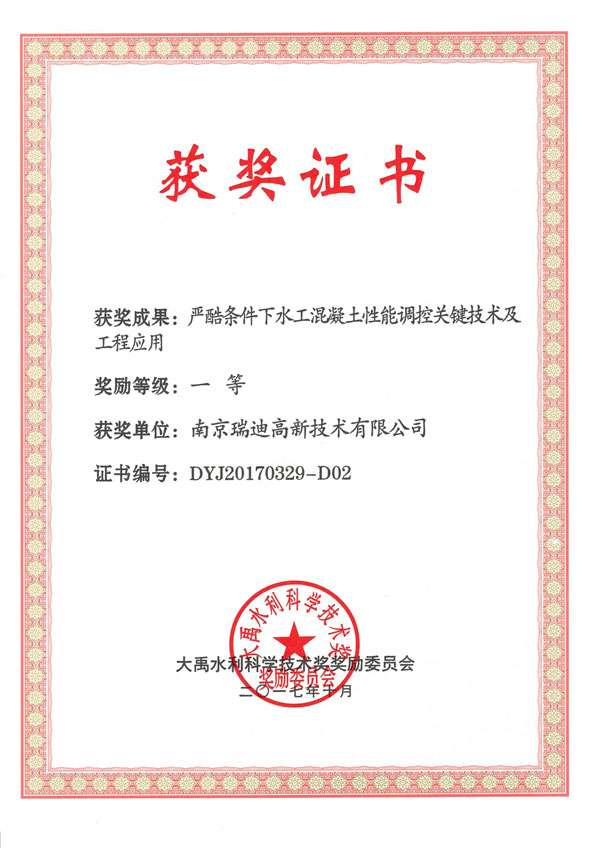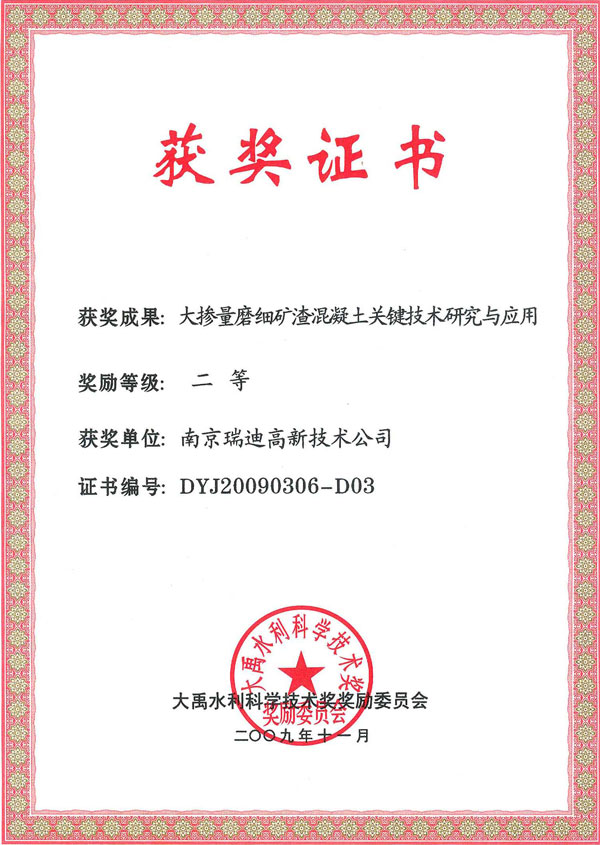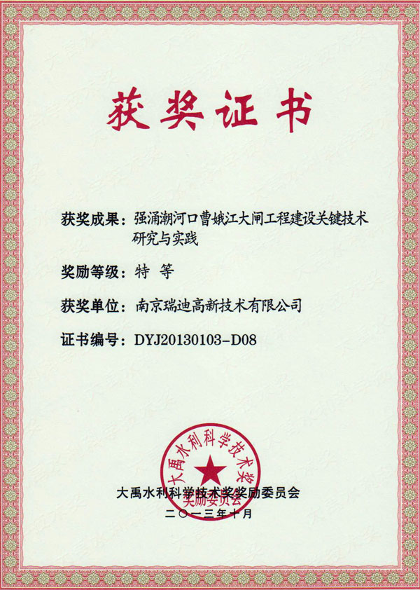 大禹獎(jiǎng)證書 |