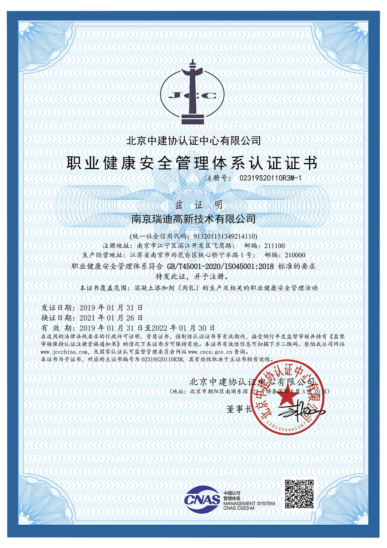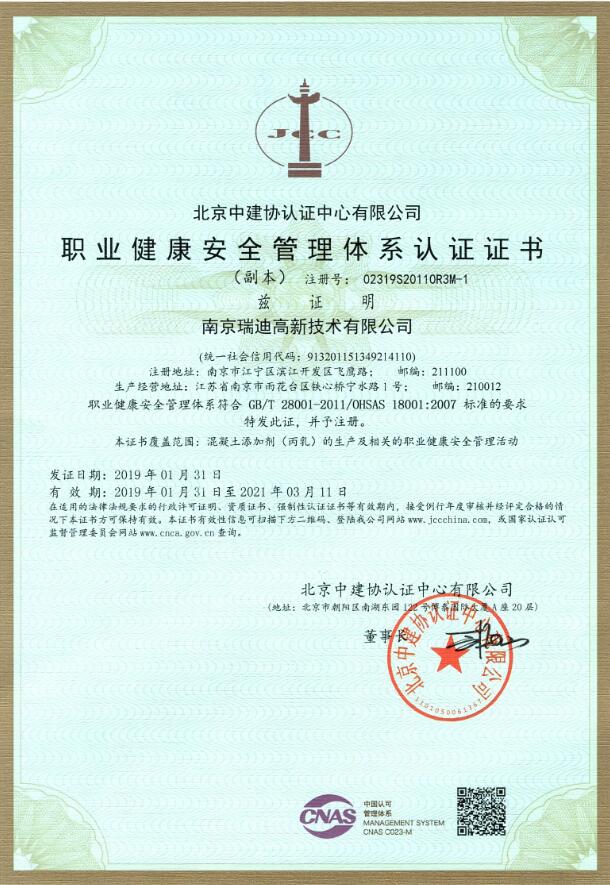 職業(yè)健康安全管理體系證書 |