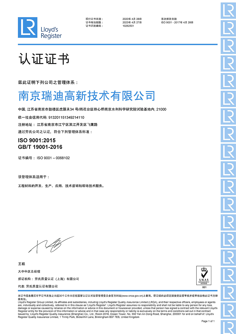 質(zhì)量管理體系證書-瑞迪 |