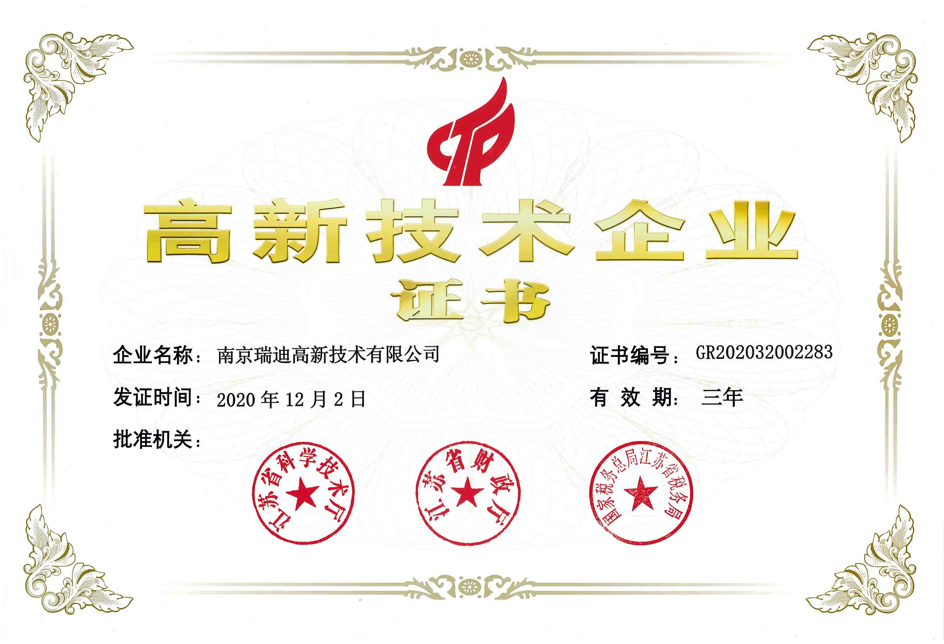 高新技術(shù)企業(yè)證書 |