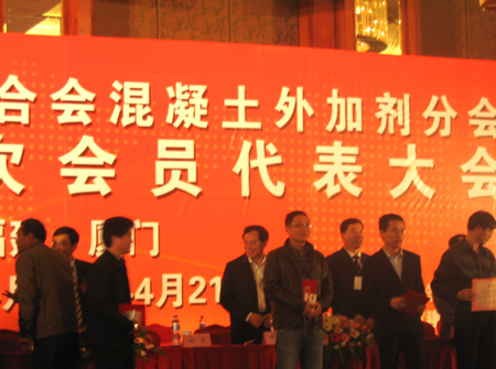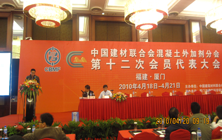 4月18日~20日,中國建材聯(lián)合會混凝土外加劑分會第十二次會員代表大會暨第三屆“中國混凝土外加劑產(chǎn)品及設(shè)備展示會”在福建廈門隆重召開,公司的陳國新高工、付丹華經(jīng)理出席會議。