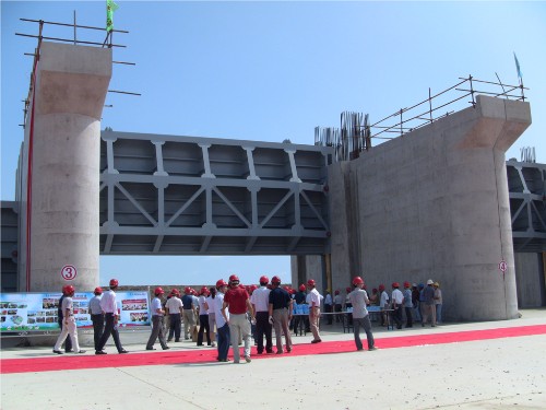三洋港擋潮閘工程效果圖 2010年7月28日,水利部淮河水利委員會(huì)在連云港市主持召開了新沭河治理工程三洋港樞紐擋潮閘工程水下工程(土建部分)驗(yàn)收會(huì)議。我公司作為項(xiàng)目混凝土技術(shù)單位的咨詢單位參加會(huì)議。 |