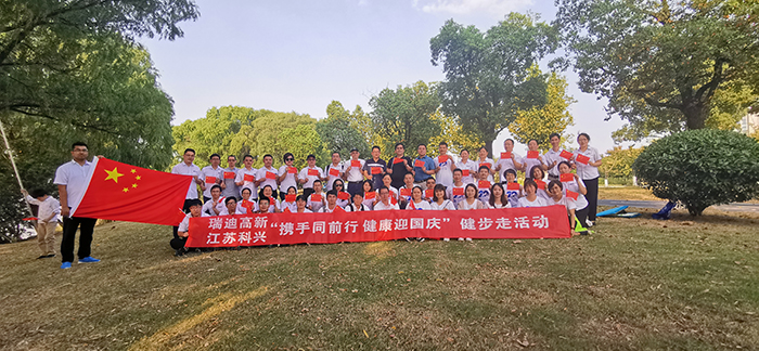 秋風(fēng)和煦,暖意融融。為慶祝祖國70華誕,2019年9月30日,瑞迪高新、江蘇科興聯(lián)合舉辦了“攜手同前行,健康迎國慶”健步走活動(dòng)。南科院戴濟(jì)群副院長、總公司唐云清總經(jīng)理、公司徐志峰董事長及兩公司40多名職工參加此活動(dòng)。 全體人員統(tǒng)一著裝,從綠博園北門出發(fā),踏著秋風(fēng),沿著綠色步道,開始了健步走活動(dòng)。一路上,秋風(fēng)送爽,丹桂飄香,大家歡聲笑語,相互間盡情舒懷,釋放工作的壓力,盡情陶醉在這美景之中。 此次活動(dòng)進(jìn)一步激發(fā)了大家的愛國情懷,豐富了公司精神文化生活,促進(jìn)了溝通,增進(jìn)了友誼,增強(qiáng)了院科技產(chǎn)業(yè)部門的凝聚力和向心力。