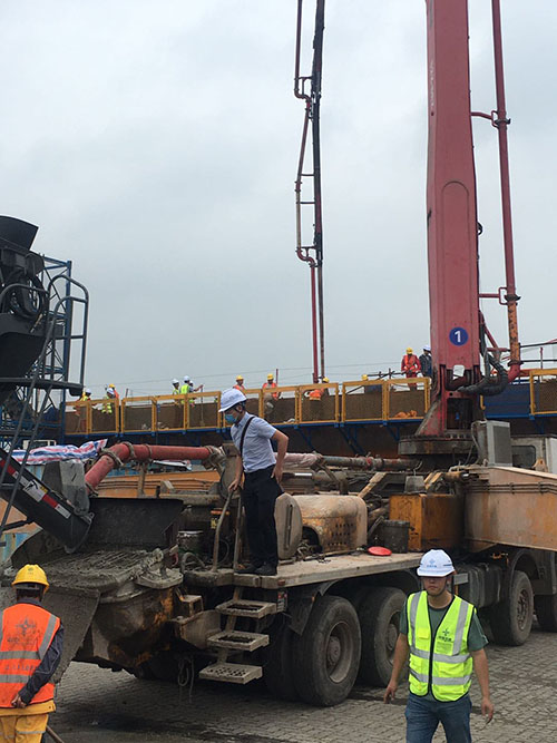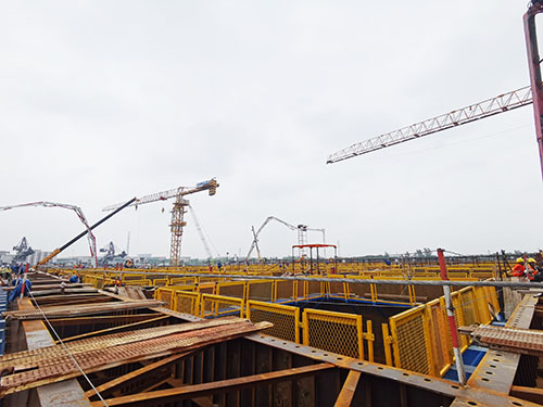 南京仙新路過江通道是南京“高快速路系統(tǒng)”的重要組成部分,預計2024年建成通車。主橋采用主跨1760m的單跨門型塔整體鋼箱梁懸索橋結構,跨徑目前在同類橋型中居國內第一、世界第二。該工程采用我公司新型聚羧酸系高性能減水劑。 6月22日上午9時許,在鞭炮齊鳴聲中,中交二公局南京仙新路過江通道A4標北錨碇沉井首次澆筑正式拉開帷幕。沉井基礎長70m、寬50m、高50m,沉井基礎劃分為9層接高完成施工,第一層8m為鋼殼混凝土,第二至第九層42m為鋼筋混凝土,共分為20個“井”孔進行施工。采用我公司新型分時段保坍型HLC-IX聚羧酸系高性能減水劑,實現(xiàn)了該項目高溫環(huán)境混凝土2h坍落度損失小于20mm、優(yōu)良的泵送性能以及初凝時間大于24h等技術要求。經(jīng)過53小時的連續(xù)施工,首件澆筑順利完成,混凝土共計澆筑約6400 m3。 主橋北錨碇第一次鋼殼混凝土的順利澆筑為后續(xù)錨體施工打下堅實基礎。這是我公司又一次參建的跨江大橋之一,不久的將來,一橋飛架南北,天塹變通途。公司將繼續(xù)以優(yōu)質的產(chǎn)品和高效的服務為該工程提供有力支撐。