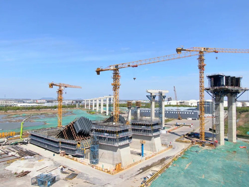 6月18日,仙新路跨江大橋北錨碇錨塊最后一層混凝土順利完成澆筑,標(biāo)志著大橋北錨碇主體工程完工。 仙新路過(guò)江通道為主跨1760m的雙塔單跨懸索橋,一跨過(guò)江,該跨徑在同類(lèi)型橋梁中處于國(guó)內(nèi)第一、世界第三。作為懸索橋的主要承重結(jié)構(gòu),大橋北錨碇為重力式錨碇,錨體平面呈U形,順橋向長(zhǎng)70.25m,橫向?qū)?/FONT>48.0m,基礎(chǔ)為沉井結(jié)構(gòu)形式,于去年精準(zhǔn)下沉至地下50m。 北錨碇錨塊混凝土澆筑采用我公司新型超長(zhǎng)保坍型HLC-IX聚羧酸系高性能減水劑,實(shí)現(xiàn)了高溫環(huán)境下混凝土2h坍落度損失小于20mm、優(yōu)良的泵送性能以及初凝時(shí)間大于40h等技術(shù)要求,確保錨塊順利澆筑。 北錨碇主體工程全部結(jié)束,即將轉(zhuǎn)入C55連續(xù)梁的現(xiàn)筑作業(yè)。公司將繼續(xù)以?xún)?yōu)質(zhì)的產(chǎn)品、高效的服務(wù)、及時(shí)的保供能力為工程提供強(qiáng)有力的支撐。