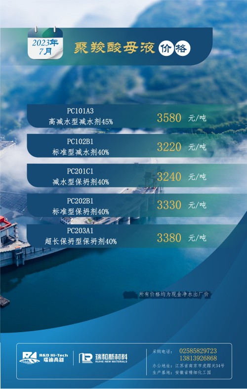 【聚羧酸系減水劑母液月度最新價格】丨2023年7月