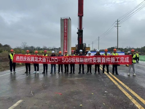 | 我司參建的預制墩柱于常州騰龍大道完成首件安裝 | |