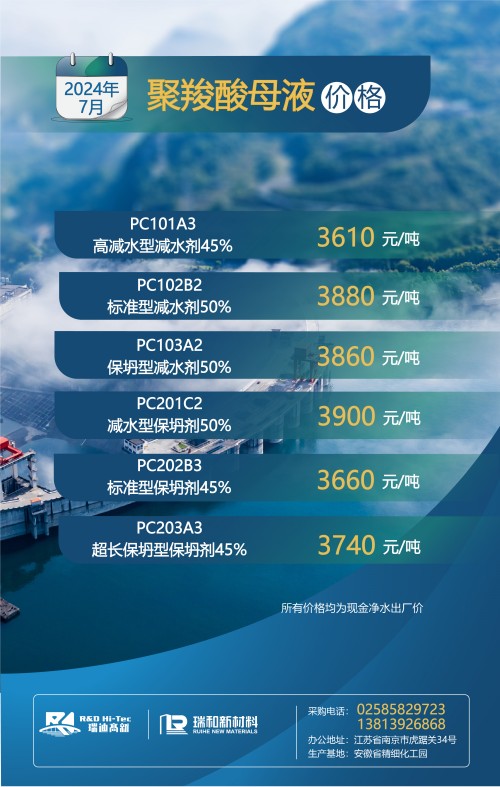 【聚羧酸系減水劑母液月度最新價(jià)格】丨2024年7月