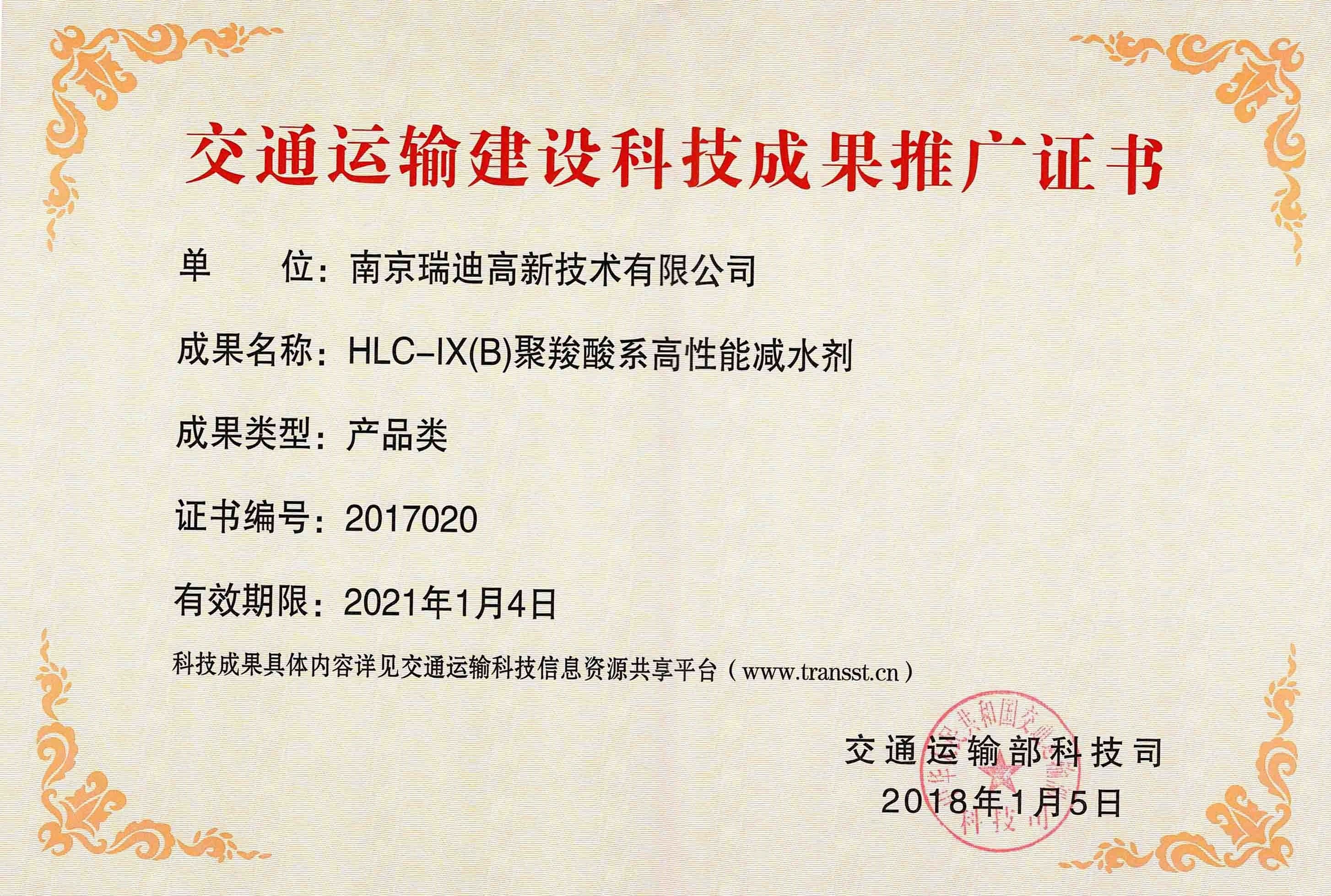 HLC-IX(B)交通運輸部科技成果推廣證書 |
