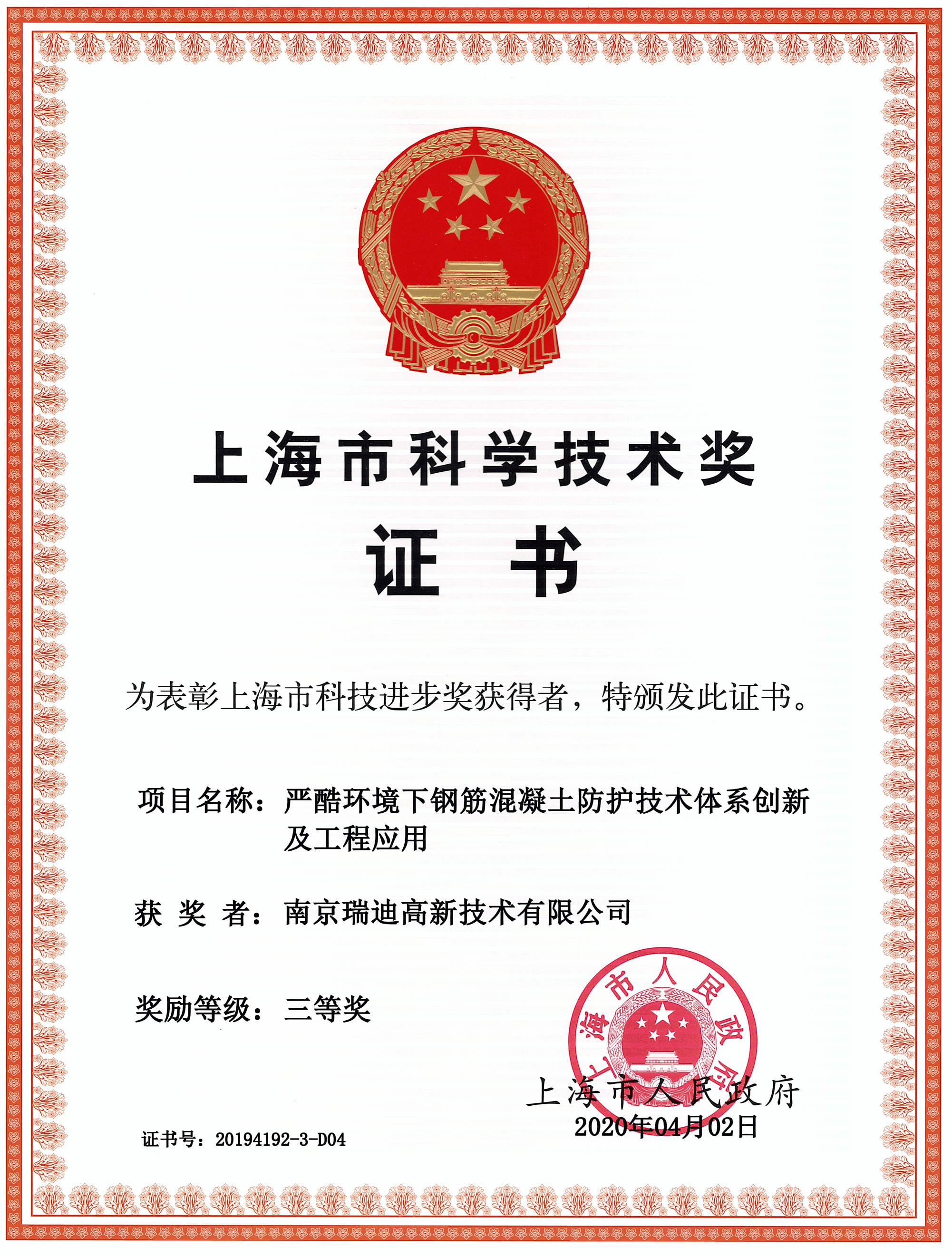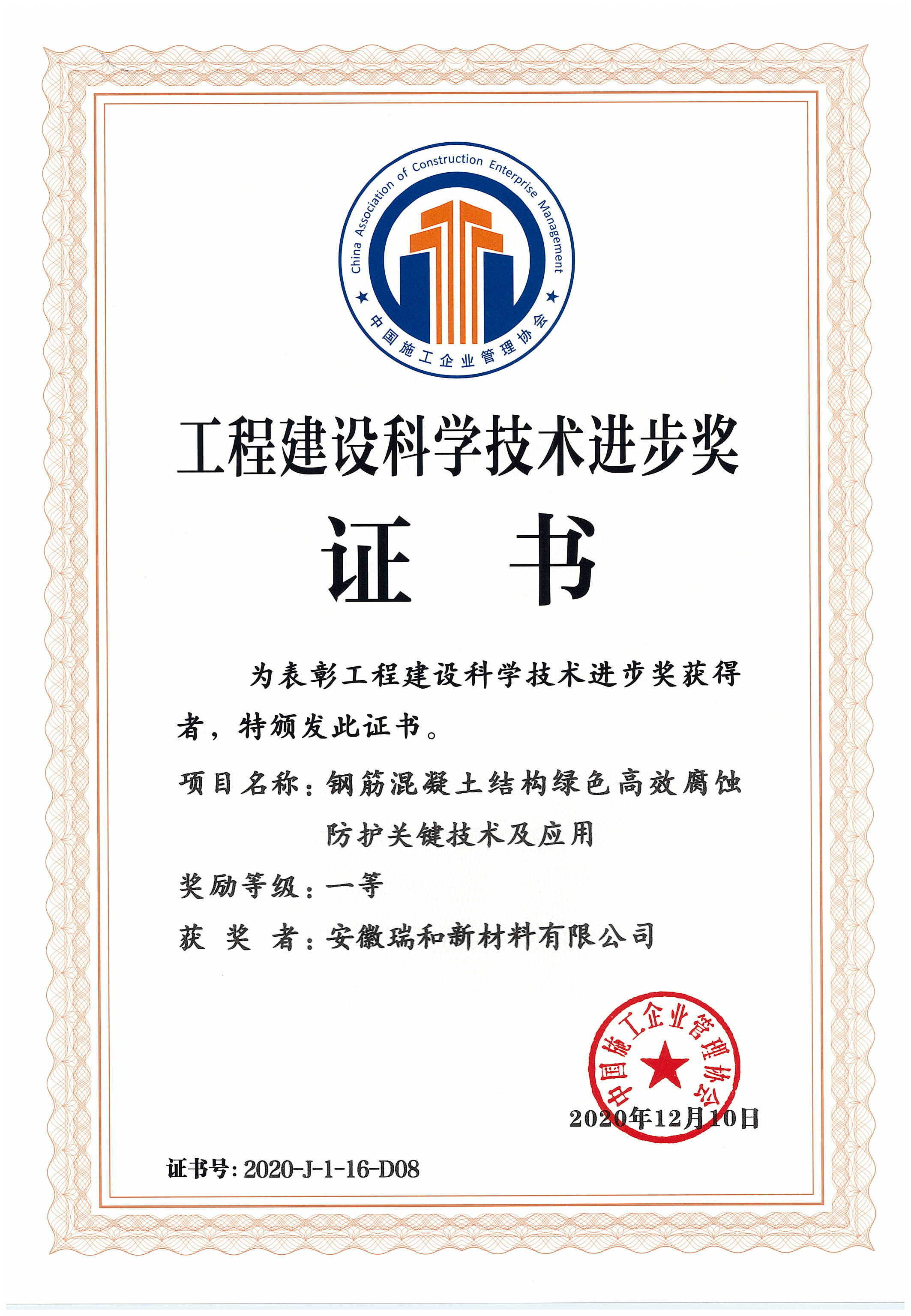工程建設(shè)科學技術(shù)進步獎證書