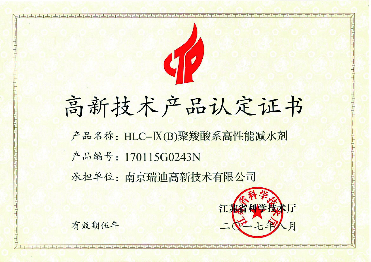 高新技術(shù)產(chǎn)品HLC-IX(B)聚羧酸系高性能減水劑 |