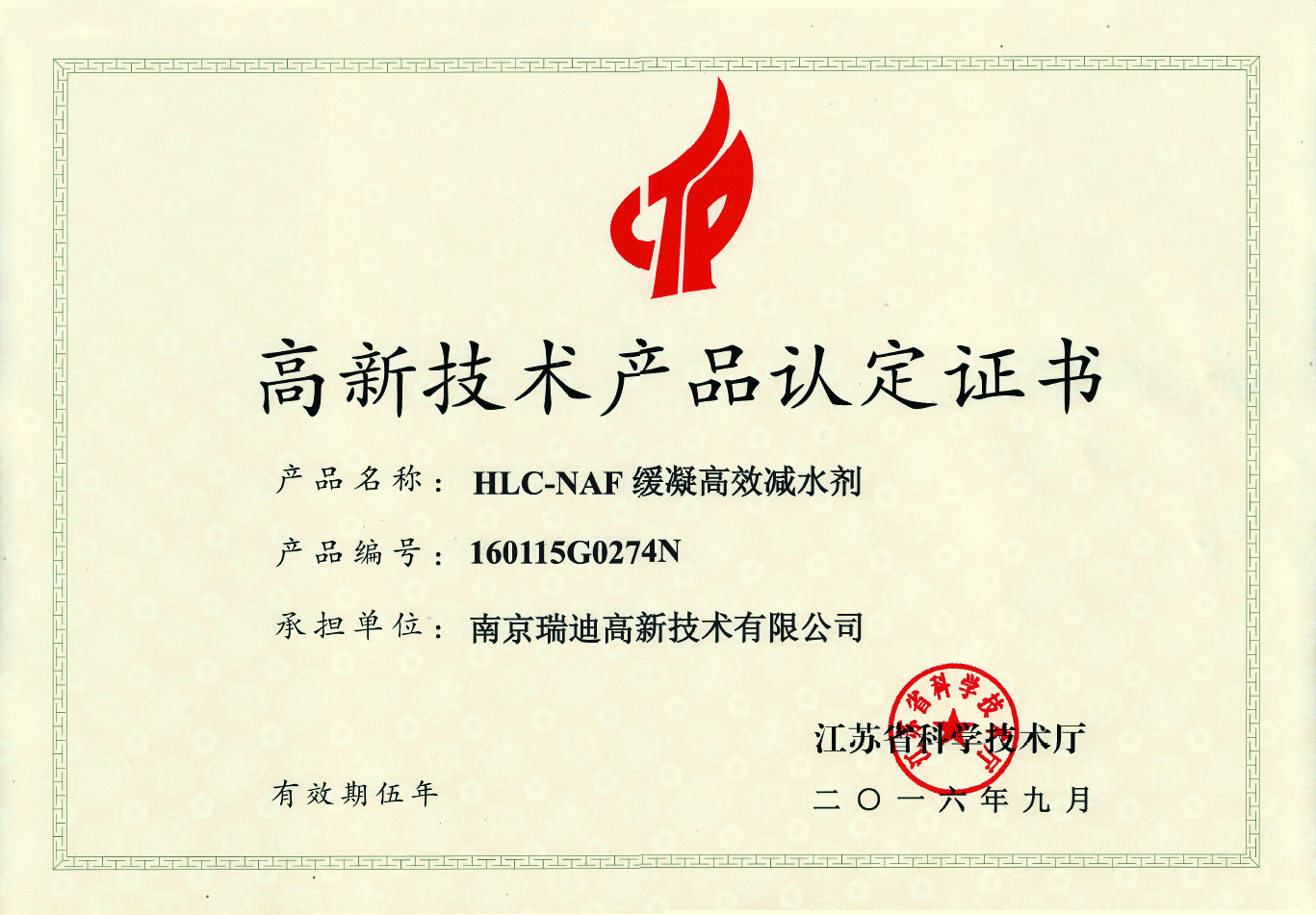 高新技術(shù)產(chǎn)品HLC-NAF緩凝高效減水劑 |