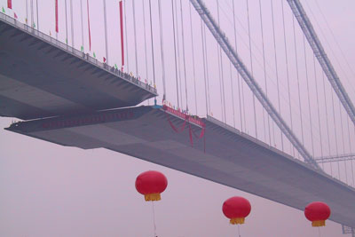 潤揚(yáng)長江大橋建設(shè)時(shí)是國內(nèi)工程規(guī)模最大、建設(shè)標(biāo)準(zhǔn)最高、投資最大、技術(shù)最復(fù)雜、技術(shù)含量最高的現(xiàn)代化特大型橋梁工程,是國內(nèi)第一座剛?cè)嵯酀?jì)的組合型橋梁,HLC-NAF2高效泵送劑應(yīng)用于該工程。其北錨碇底板厚5m,一次性澆筑1.5萬方混凝土,屬于大體積混凝土。采用HLC-I混凝土抗裂防滲劑配制的混凝土解決了連續(xù)超過10小時(shí)大體積混凝土泵送施工和抗裂防滲問題。